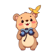 Bring the magic of the outdoors indoors! This vibrant poster captures a happy bear cub, binoculars in hand, captivated by a bird in flight.